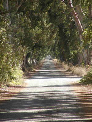 Blick durch die schönste Allee der Türkei. Sie ist ca. 3km lang und liegt parallel zu der ausgebauten Hauptstraße kurz vor der Ortschaft Gökova.